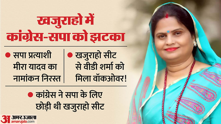 मध्य प्रदेश की खजुराहो सीट से भाजपा के प्रदेश अध्यक्ष वीडी शर्मा मौजूदा सांसद और उम्मीदवार हैं। उनकी राह अब आसान हो गई है। एक तरह से इंडिया गठबंधन ने उन्हें वॉकओवर ही दे दिया है। नामांकन निरस्त होने के बाद राजनीतिक उठापटक भी तेज हो गई है। कांग्रेस और सपा का उम्मीदवार न होने की स्थिति में दोनों ही पार्टियां मिलकर किसी एक उम्मीदवार को इंडिया गठबंधन का समर्थन दे सकती है। लेकिन उसे कांग्रेस या सपा का चुनाव चिह्न नहीं मिल सकेगा। खजुराहो लोकसभा क्षेत्र के रिटर्निंग ऑफिसर और पन्ना कलेक्टर सुरेश कुमार ने कहा कि नामांकन फॉर्म को दो आधार पर निरस्त किया गया है। मीरा यादव ने अपने नामांकन फॉर्म के साथ सत्यापित मतदाता सूची संलग्न नहीं की थी। फॉर्म में दो जगह हस्ताक्षर भी नहीं पाए गए हैं।