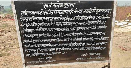 प्राधिकरण द्वारा लगाया गया ध्वस्तीकरण बोर्ड लोगों के लिए चेतावनी बनकर उभरा