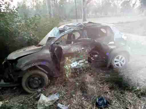 चालक ने कार को संभालने की कोशिश की, लेकिन वाहन सीधे पीपल के पेड़ से जा भिड़ा।