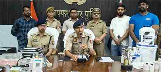Muzaffarnagar । उत्तर प्रदेश के मुजफ्फरनगर जिले में स्वास्थ्य के नाम पर हो रहे सबसे बड़े धोखाधड़ी के खेल का पर्दाफाश करते हुए खालापार थाना पुलिस ने नकली हेल्थ सप्लीमेंट बनाने वाले गिरोह को पकड़ लिया है। पुलिस ने मौके से करीब 1.5 करोड़ रुपये मूल्य का भारी मात्रा में सामान बरामद किया है। इसमें प्रोटीन पाउडर, कैप्सूल, खाली डिब्बे, पैकिंग मशीन, लेबल, स्टिकर और कैप्सूल फिलिंग मशीन शामिल हैं।