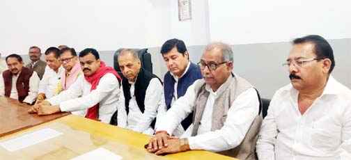 सपा के नेताओं का एकजुटता प्रदर्शन
