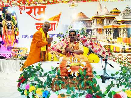 तभी सच्चा सुख प्राप्त हो सकेगा ! आज की कथा के मुख्य यजमान श्री अजय कुमार गर्ग (बैंक वाले )ने व सभा के अध्यक्ष श्री शंकर स्वरूप बंसल ने महाराज जी का तिलक लगाकर व माल्यार्पण कर स्वागत सम्मान किया! इसके अलावा आज महामंडलेश्वर श्री संजीव शंकर जी ने भी महाराज श्री का तुलसी माला पहनकर सम्मान किया सभा के मंत्री दीपक मित्तल द्वारा श्री संजीवशंकर को पटका पहनकर वह शिवचरण गर्ग द्वारा माल्यार्पण कर सम्मानित किया गया !