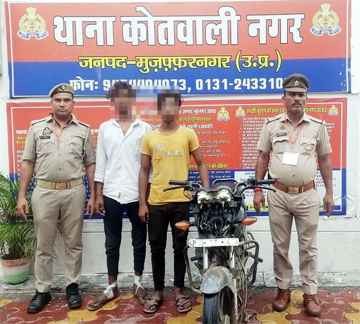 मुजफ्फरनगर।(Muzaffarnagar News) थाना कोतवाली नगर पुलिस द्वारा मोटरसाइकिल चोरी की घटना का सफल अनावरण करते हुए ०२ वाहन चोर अभियुक्तगण को किया गया गिरफ्तार । कब्जे से चोरी की ०१ मोटरसाइकिल बरामद।