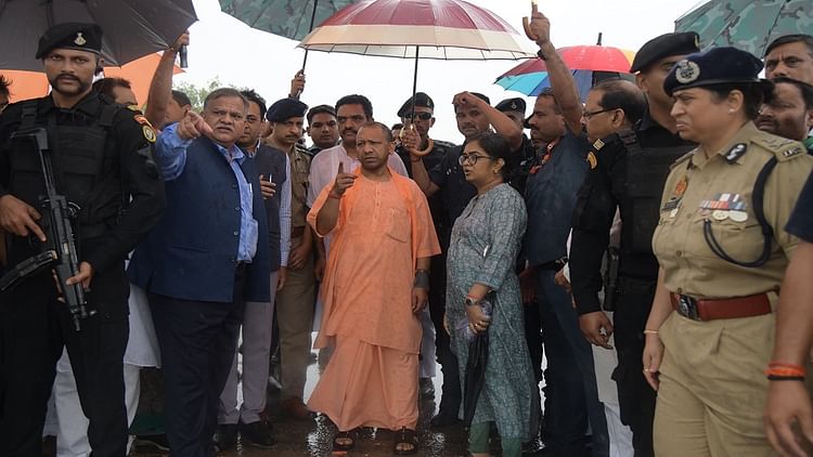 सिकन्द्राराऊ हादसे के बाद घटनास्थल का निरीक्षण करते मुख्यमंत्री योगी आदित्यनाथ