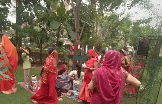 फोटो36गंजडुंडवारा में आंवला के पेड़ की पूजा कर परिक्रमा लगाती महिलाएं । संवाद