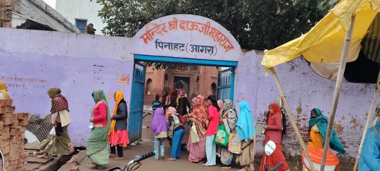 पिनाहट। माघ पूर्णिमा के पावन अवसर पर रविवार को कस्बा स्थित प्राचीन दाऊजी मंदिर में श्रद्धालुओं की भीड़ रही। क्षेत्र के विभिन्न गांवों से आए श्रद्धालुओं ने मंदिर की परिक्रमा की और विधि-विधान से पूजा-अर्चना कर सुख-समृद्धि की कामना की। परिक्रमा के दौरान दाऊजी महाराज के जयकारे लगाए। पूजा-अर्चना के बाद श्रद्धालुओं ने प्रसाद ग्रहण किया।