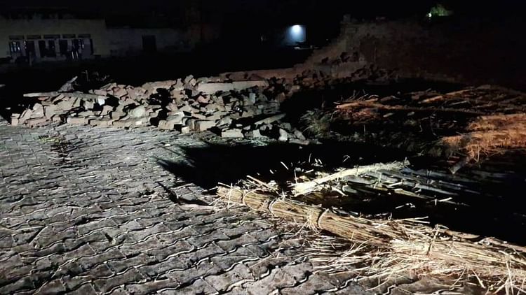 आगरा में आंधी, बारिश से दीवार ढह गई।