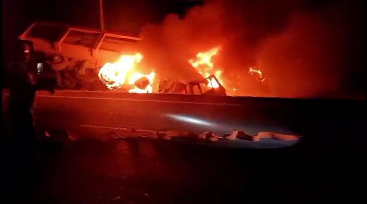 उरई में झांसी से गिट्टी और डस्ट लेकर रविवार सुबह ट्रक व डीसीएम उरई की ओर जा रहे थे। जैसे ही दोनों वाहनों ने झांसी सीमा क्रॉस कर जालौन बॉर्डर में प्रवेश किया, तो ओवरटेक के चक्कर में दोनों में भिड़ंत हो गई। इससे दोनों ही वाहनों में आग लग गई।