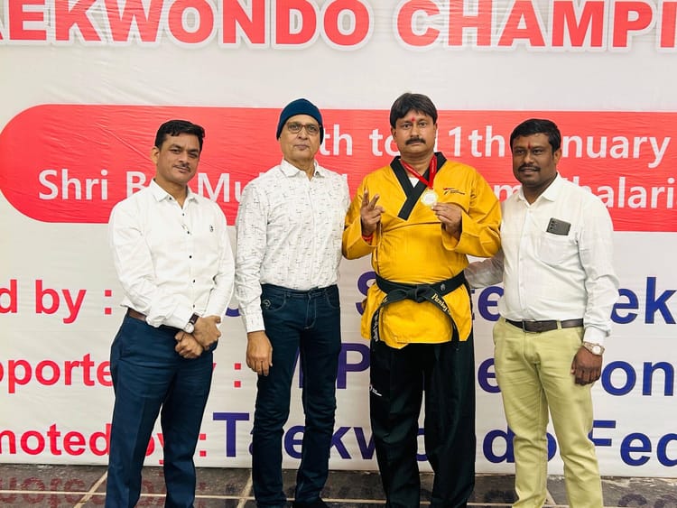 आगरा। मध्य प्रदेश के उज्जैन शहर में ताइक्वांडो फेडरेशन ऑफ इंडिया एवं मध्य प्रदेश ताइक्वांडो संघ तृतीय महाकाल ओपन राष्ट्रीय ताइक्वांडो प्रतियोगिता करा रहा है। जिसमें आगरा के इंटरनेशनल ताइक्वांडो मास्टर पंकज शर्मा ने सीनियर वर्ग पूमसे व्यक्तिगत स्पर्धा में स्वर्ण पदक जीता। वहीं आगरा के खिलाड़ी संतोष कुमार सिंह व प्रदीप गौर पूमसे के फाइनल में पहुंच चुके हैं, मितुल सिंघल सेमीफाइनल में पहुंच चुके हैं। जबकि फाइट में गौरांशी कटारा, माधव गौतम, प्रशांत कुशवाहा, सुदर्शन देबनाथ फाइनल में, जतिन बघेल व इशांत कुमार सेमीफाइनल में पहुंच चुके हैं।