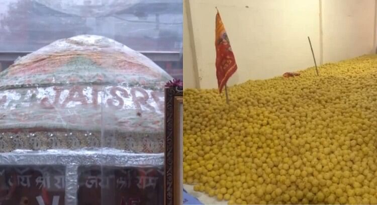 हैदराबाद में कैटरिंग का काम करने वाले एन नागभूषणम रेड्डी ने संकल्प लिया था कि वो राम मंदिर बनने तक हर रोज प्रभु राम को समर्पित कर एक किलो लड्डू बनाएंगे। अब जब मंदिर बन गया है तो वह हैदराबाद से 1265 किलो लड्डू प्रभु श्रीराम के लिए लेकर आए हैं। उन्होंने बताया कि इन्हें तीन दिन में 25 लोगों ने मिलकर तैयार किया है।