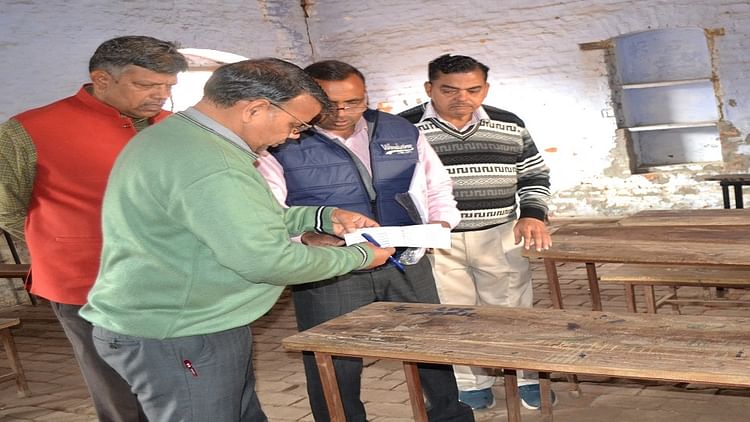 परीक्षा की तैयारियों के चलते सरस्वती इंटर कॉलेज में सिटिंग प्लान कराते प्रधानाचार्य व शिक्षक
