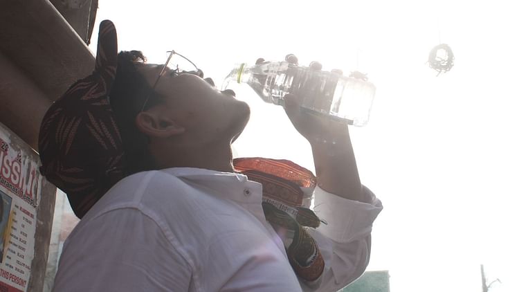 भीषण गर्मी में पानी का भरपूर सेवन कर रहे लोग।
