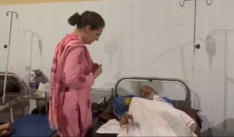 बुजुर्ग का हालचाल लेने पहुंची कांग्रेस नेता प्रियंका गांधी।