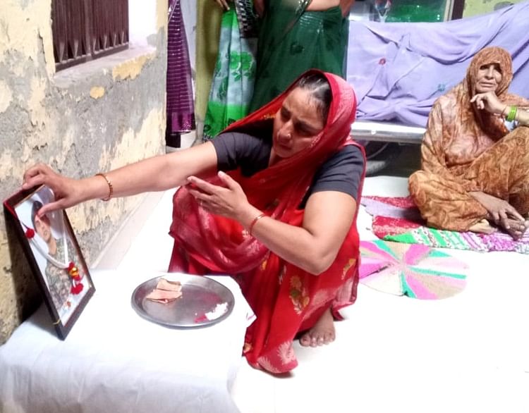 बलिदानी सुभाष कुमार की तस्वीर पर तिलक लगातीं बहन अंजना