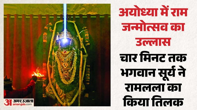 रामनगरी अयोध्या स्थित राम जन्मभूमि मंदिर में राम जन्मोत्सव धूमधाम से मनाया जा रहा है। दोपहर 12 बजे भगवान सूर्य ने रामलला के ललाट पर तिलक किया। यह लगभग चार मिनट तक चला। विशेष बात यह रही कि तिलक ठीक उसी समय हुआ, जो समय भगवान राम के जन्म का क्षण माना जाता है।