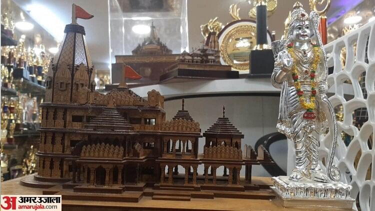 मॉडल एक आधार पर खड़े हैं, जिस पर हिंदी में लिखा है.. श्री राम मंदिर अयोध्या या श्री राम जन्मभूमि मंदिर अयोध्या। 22 जनवरी की तारीख जैसे-जैसे करीब आ रही है, वैसे-वैसे बाजार में भी राममय माहौल की झलक बढ़ती जा रही है।