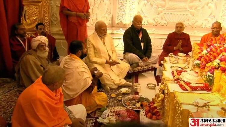 प्रधानमंत्री नरेंद्र मोदी ने राम मंदिर में प्रवेश किया है। इसके बाद राम लला की प्राण प्रतिष्ठा शुरू हुई। मंगल ध्वनि के बीच राम लला का प्राण प्रतिष्ठा अनुष्ठान शुरू हुए। पीएम मोदी के साथ मोहन भागवत भी मौजूद हैं।