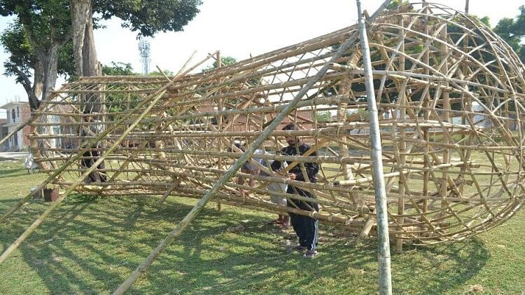 हाथरस में रावण का पुतला बनते हुए