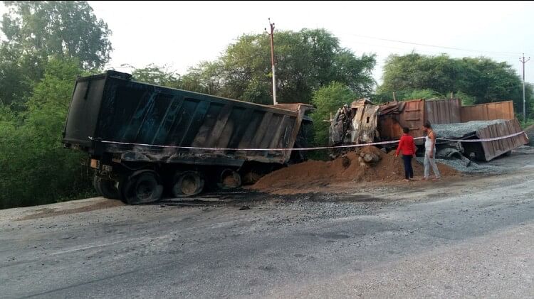 झांसी में दो डंपर भिड़े