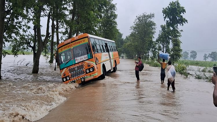 लखीमपुर खीरी जिले में तेज बारिश और बैराज से शारदा नदी में छोड़ा गया पानी एक बार फिर पलिया–भीरा मार्ग पर पहुंच गया। शुक्रवार सुबह भीरा मार्ग पर रोडवेज बस पानी के तेज बहाव में बहकर सड़क किनारे पहुंच गई, जिससे यात्रियों में चीख-पुकार मच गई। आधी बस सड़क और आधी नीचे लटक गई। गनीमत रही कि बस पलटी नहीं। आनन-फानन सभी यात्री नीचे उतरे। जिला प्रशासन ने इस मार्ग से आवागमन रोक दिया है।