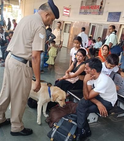 स्टेशन पर चेकिंग करते आरपीएफ जवान ।
