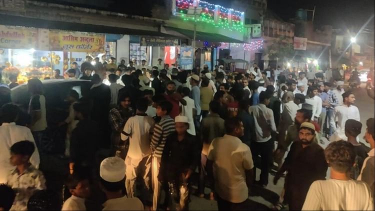 हामिद की हत्या के विरोध में जाम लगाते लोग।
