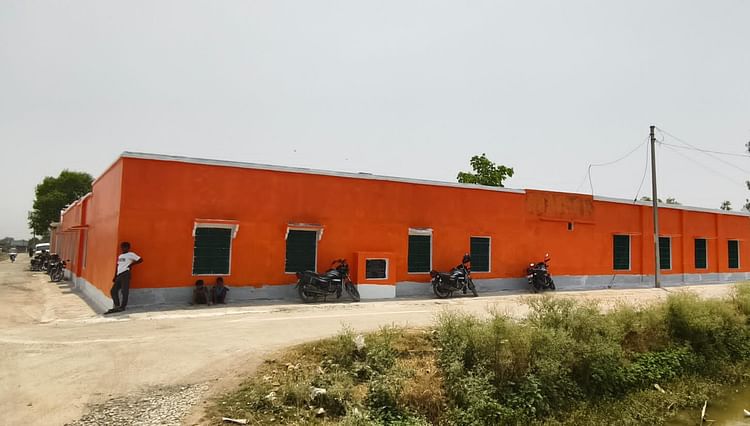 भगवा रंग से रंगवा दिया विद्यालय भवन