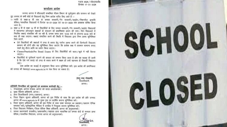 जनवरी की शुरुआत से ही आगरा भीषण ठंड की चपेट में है। भीषण ठंड को देखते हुए जिलाधिकारी भानुचंद्र गोस्वामी ने कक्षा 8 तक के विद्यालयों का अवकाश 19 जनवरी तक के लिए बढ़ा दिया है। 21 जनवरी को रविवार और 22 जनवरी को अयोध्या में प्राण प्रतिष्ठा समारोह के चलते सार्वजनिक अवकाश रहेगा।