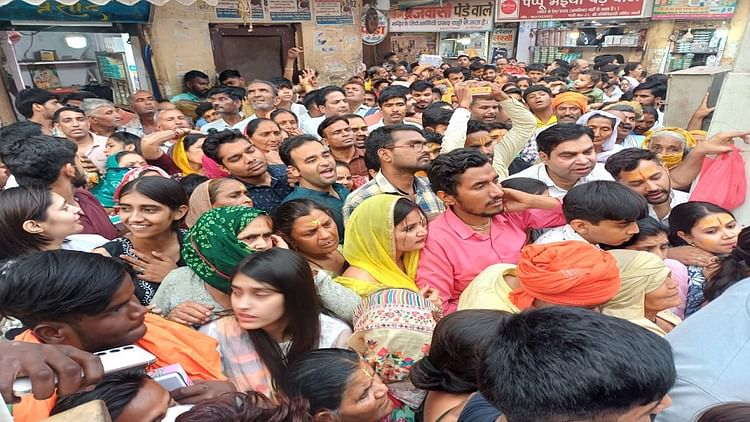 वृंदावन में ठाकुर बांकेबिहारी मंदिर में शनिवार को एक बार फिर सुबह से ही भक्तों का तांता लगा रहा। श्रद्धालुओं ने आपाधापी और धक्का मुक्की के बीच बड़ी मुश्किल से दर्शन किए। उधर मंदिर के बाहर गलियों में भी मंदिर तक पहुंचने में तपती गर्मी में श्रद्धालुओं को घंटों लग गए।