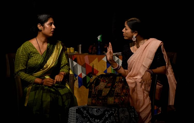 नाटक के मंचन के दौरान कलाकार।