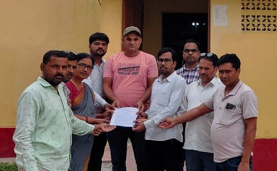 – फोटो : किशनी बीआरसी पर ज्ञापन देते शिक्षा मित्र।