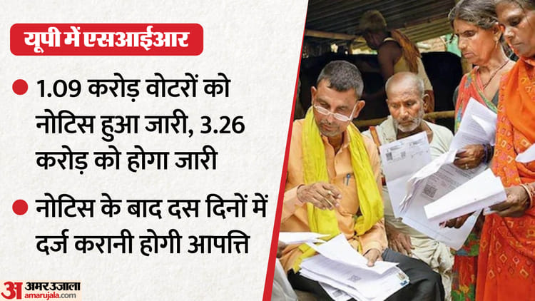 उत्तर प्रदेश में मतदाता सूची के विशेष प्रगाढ़ पुनरीक्षण(एसआईआर) के 1.09 करोड़ मतदाताओं को नोटिस जारी कर दिया गया है। दस दिन में इन मतदाताओं को आपत्तियां दर्ज करानी होगी। उसी आधार पर सुनवाई होगी। नोटिस देने की प्रक्रिया लगातार जारी रहेगी।
