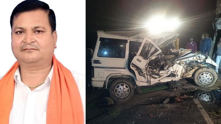 मृत भाजपा नेता मनीष द्विवेदी व हादसे में दुर्घटनाग्रस्त वाहन।