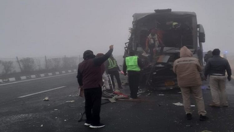 शनिवार सुबह 6:30 बजे करीब यह हादसा थाना नगला खंगर क्षेत्र के अंतर्गत एक्सप्रेस-वे पर घटित हुआ। बनारस से राजस्थान की एक स्लीपर बस 20-22 सवारियों को लेकर जयपुर राजस्थान जा रही थी। जिसे चालक धर्मपाल निवासी राशि जिला बीकानेर राजस्थान चला रहा था। उसके साथ में कंडक्टर सूरज निवासी संगरिया थाना संगरिया जिला हनुमानगढ़ राजस्थान बैठा हुआ था। कोहरे में एक्सप्रेस-वे पर स्लीपर बस जब थाना नगला खंगर क्षेत्र के अंतर्गत किलोमीटर संख्या 67.100 पर पहुंची। तभी घने कोहरे के कारण बस चालक को आगे चल रहा वाहन दिखाई नहीं दिया।