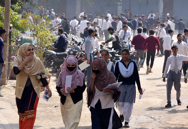 यूपी बोर्ड की परीक्षा देकर आते छात्र छात्राएं