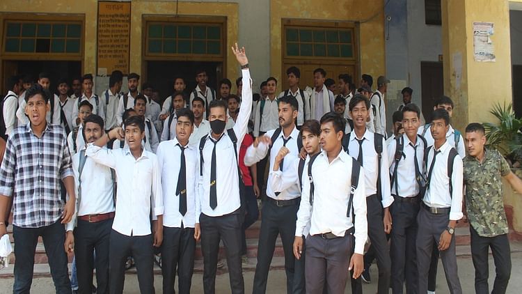 काफी संख्या में फेल होने पर प्रदर्शन करते छात्र