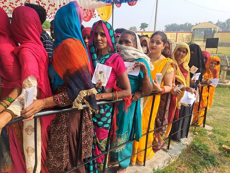 बूथ के बाहर लगीं कतारें।
