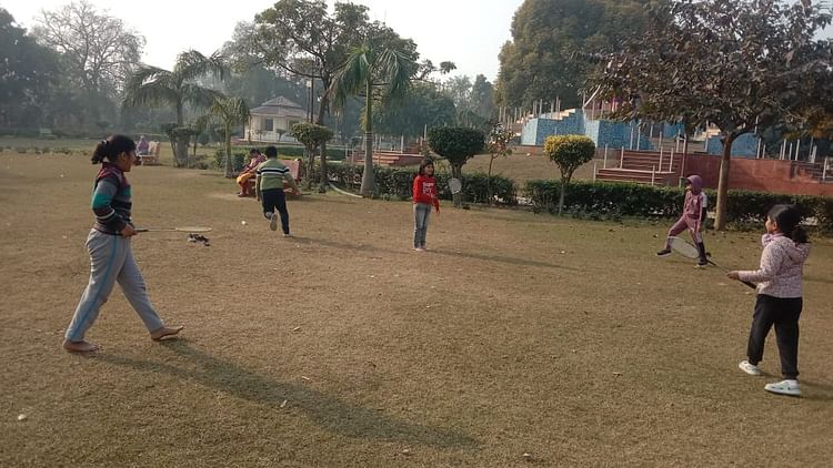 धूप निकलने पर बुधवार को लोहिया पार्क में खेलने पहुंचे बच्चे।
