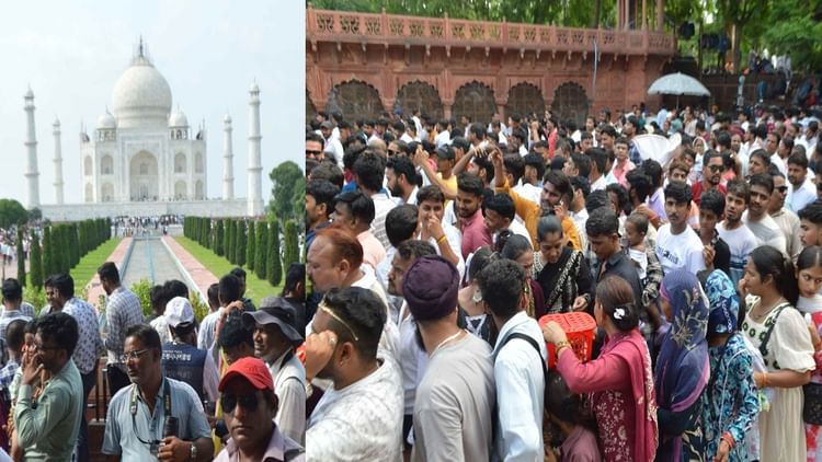 अभ्यर्थियों ने परीक्षा के बाद ताज देखा। पश्चिमी गेट की दुकानों और लॉकर के पास बड़ी संख्या में बैग रखे नजर आए।