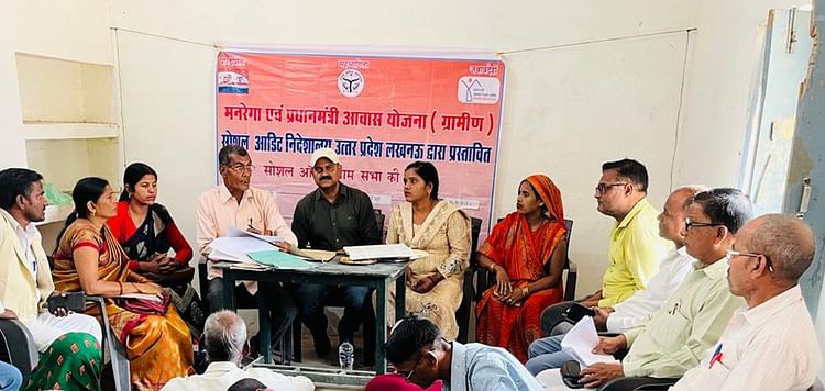 अमेठी के ग्राम पंचायत दरखा में सोशल आडिट के दौरान मौजूद मनरेगा लोकपाल ओजस्कर पांडेय व अन्य लोग।