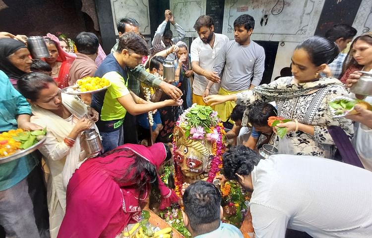 – फोटो : रंगेश्वर महादेव मंदिर में अभिषेक करते भक्त।