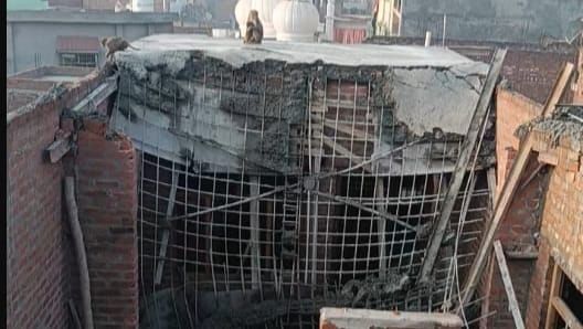फोटो22सहावर के मोहल्ला कुरेशी में गिरा निर्माणाधीन लिंटर । संवाद
