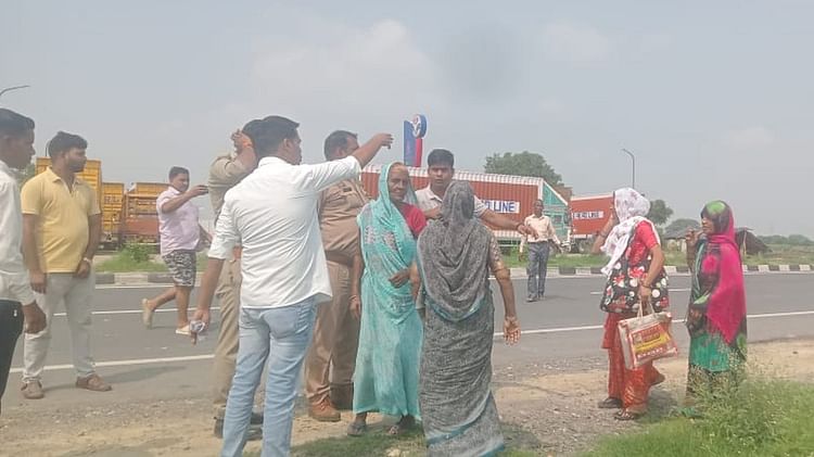 बिछवां में साकार विश्व हरि के आश्रम में जाने से लोगों को रोकती पुलिस।