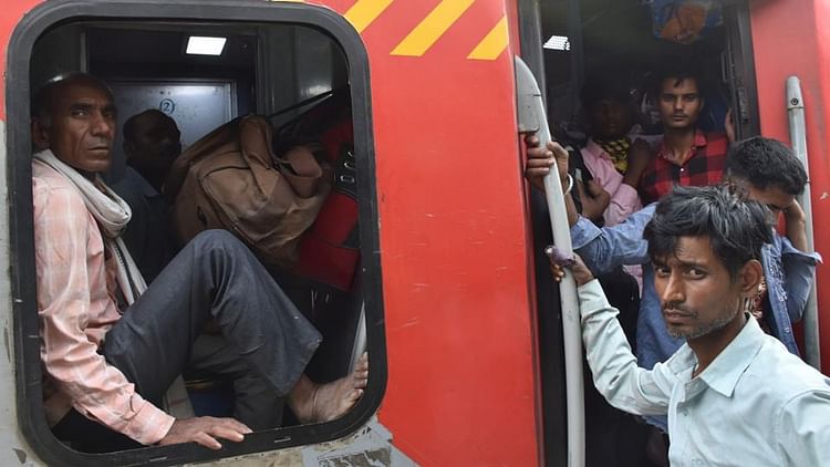 मुरादाबाद रेलवे स्टेशन पर खड़ी ट्रेन में बैठे लोग
