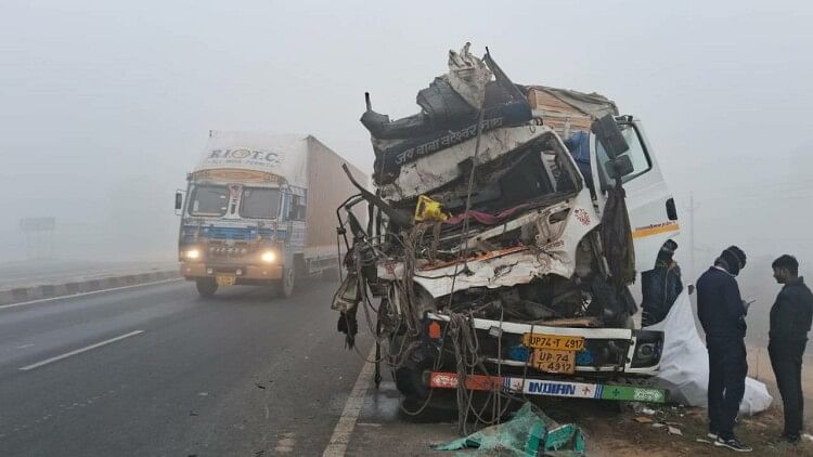 Etah: भूसा लदी ट्रैक्टर-ट्रॉली में घुसा कैंटर, चालक समेत दो लोग घायल