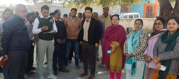 नगला भूतल में खेल मैदान में भूमि चिन्हांन के लिए पहुंचे एसडीएम, पीडी मनरेगा व अन्य ।