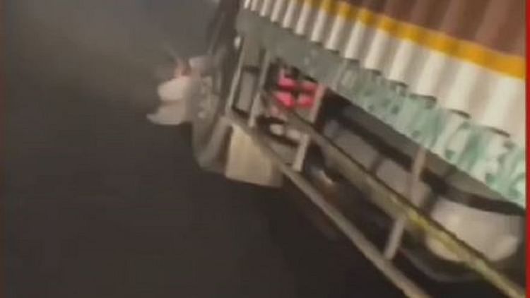 जान बचाने के लिए ट्रक के आगे लगा लोहे का बंपर पकड़ लिया। चालक ने ट्रक नहीं रोका। दोनों युवक ट्रक के नीचे फंसे थे। करीब 300 मीटर तक ट्रक चालक ने उन्हें हाईवे पर घसीटा। दोनों मदद के लिए चीख रहे थे। सोशल मीडिया पर 41 सेकंड का वीडियो वायरल हो रहा है।