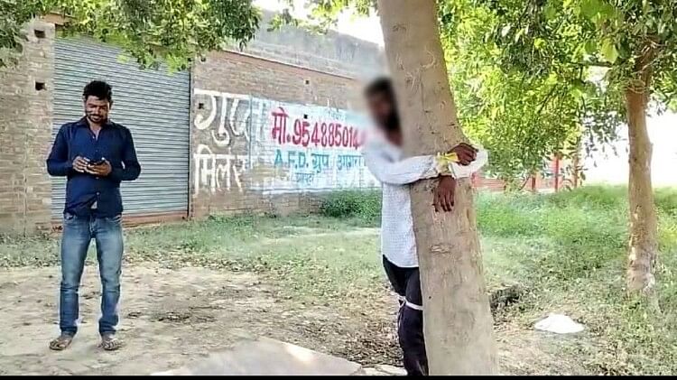 उत्तर प्रदेश के आगरा में बुधवार को मानवता को शर्मसार करने वाली घटना सामने आई है। यहां दबंगों ने एक बोरी अनाज चुराने पर युवक को पेड़ से बांधकर पीटा। उस पर लात-घूंसे और थप्पड़ बरसाए। इसका वीडियो भी सामने आया है।