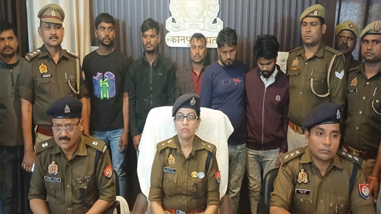 सीओ भोगनीपुर संजय वर्मा ने बताया कि शनिवार को मुखबिर की सूचना पर भोगनीपुर थानाध्यक्ष अमरेंद्र बहादुर सिंह के नेतृत्व में पुलिस टीम के साथ पिलखनी रोड स्थित अल्कापुरी कॉलोनी के ट्यूबवेल के पास बनी दुकानों में छापा मारा। पुलिस ने चोरी के रुपयों का बंटवारा कर रहे डेरापुर थाना क्षेत्र के कटेही निवासी शरद कुमार, कुलदीप, बहेरी निवासी विपिन कुमार, रिंकू व कानपुर नगर के बिधनू थाना क्षेत्र के दलेलपुर निवासी सितेंद्र को गिरफ्तार किया। आरोपियाें के पास से 7400 रुपये, चिपचिपा पदार्थ लगी हुई प्लेट, चाकू आदि बरामद किया।