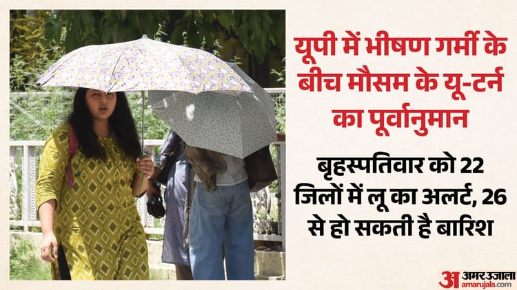 बृहस्पतिवार के लिए यूपी के 22 जिलों में लू की चेतावनी जारी किया गया है। बुधवार को बांदा में अधिकतम तापमान 43.8 डिग्री सेल्सियस दर्ज हुआ। वहीं वहीं 43.7 डिग्री के साथ प्रयागराज प्रदेश में दूसरे नंबर पर रहा। आंचलिक माैसम विज्ञान केंद्र लखनऊ के वरिष्ठ वैज्ञानिक अतुल कुमार सिंह ने बताया कि 26 अप्रैल से एक नए विक्षोभ के सक्रिय होने से प्रदेश भर में बादलों की सक्रियता बढ़ेगी और पश्चिमी यूपी, तराई आदि में बूंदाबांदी से पारे में गिरावट के संकेत हैं।